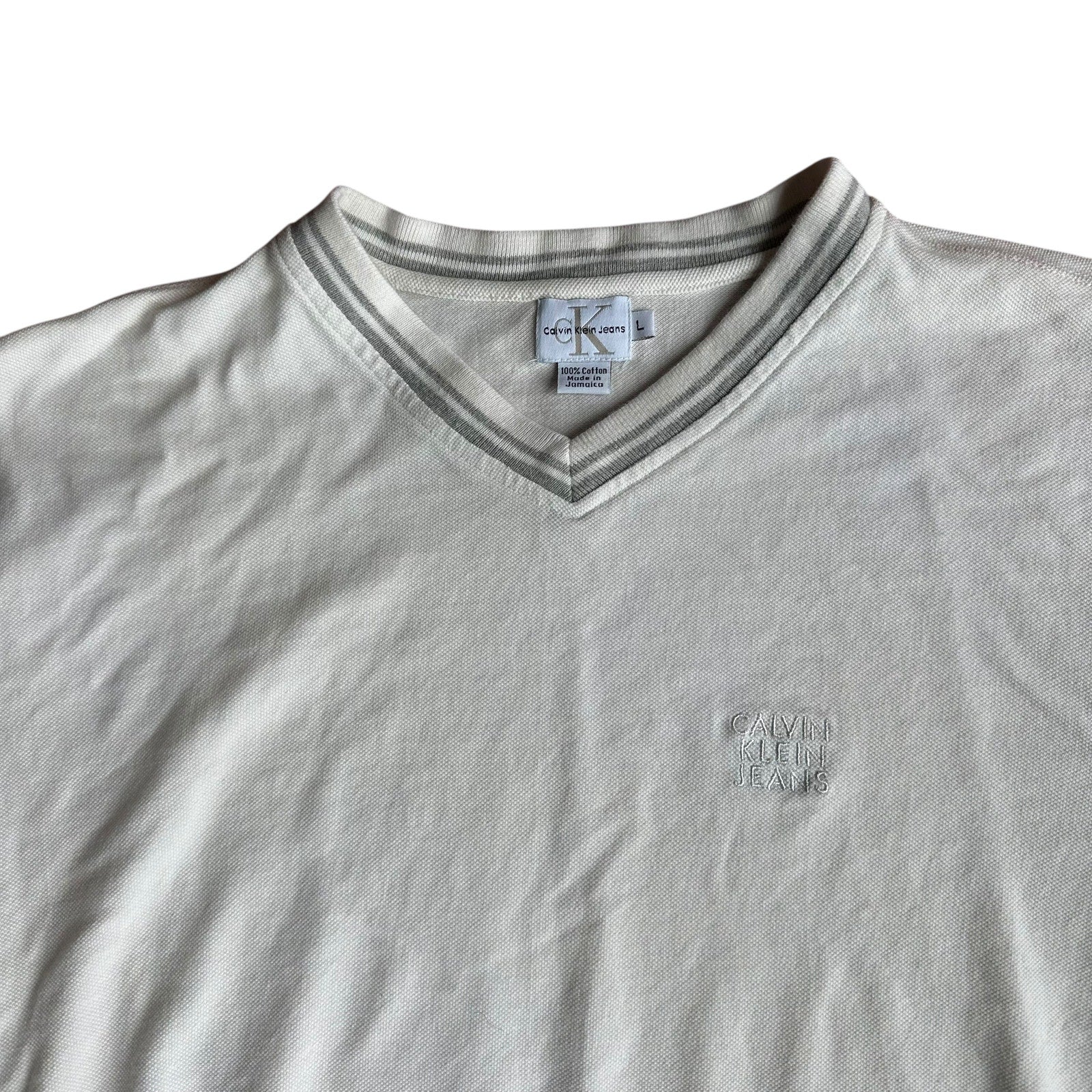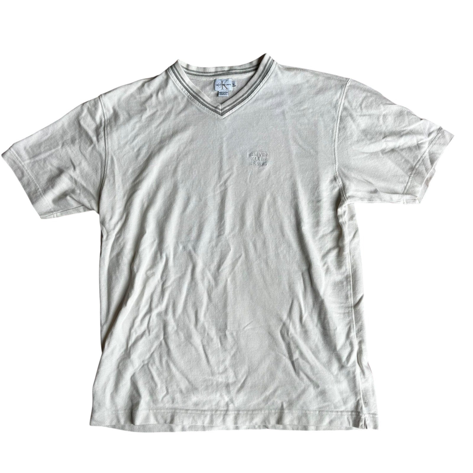 Calvin Klein White Gray V-Neck T-Shirt NWOT Mens Large