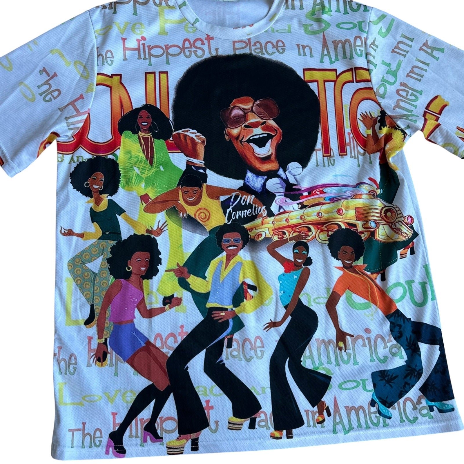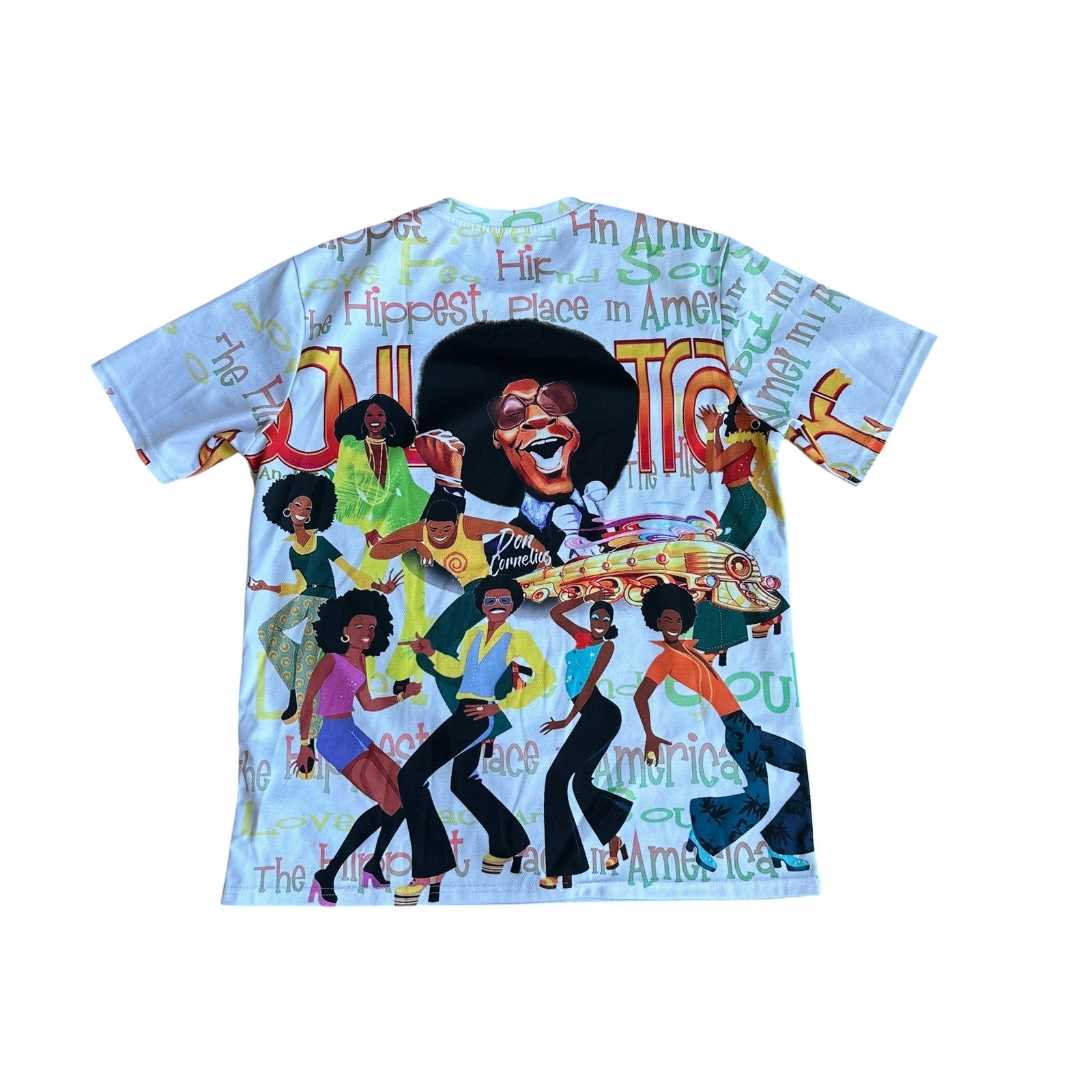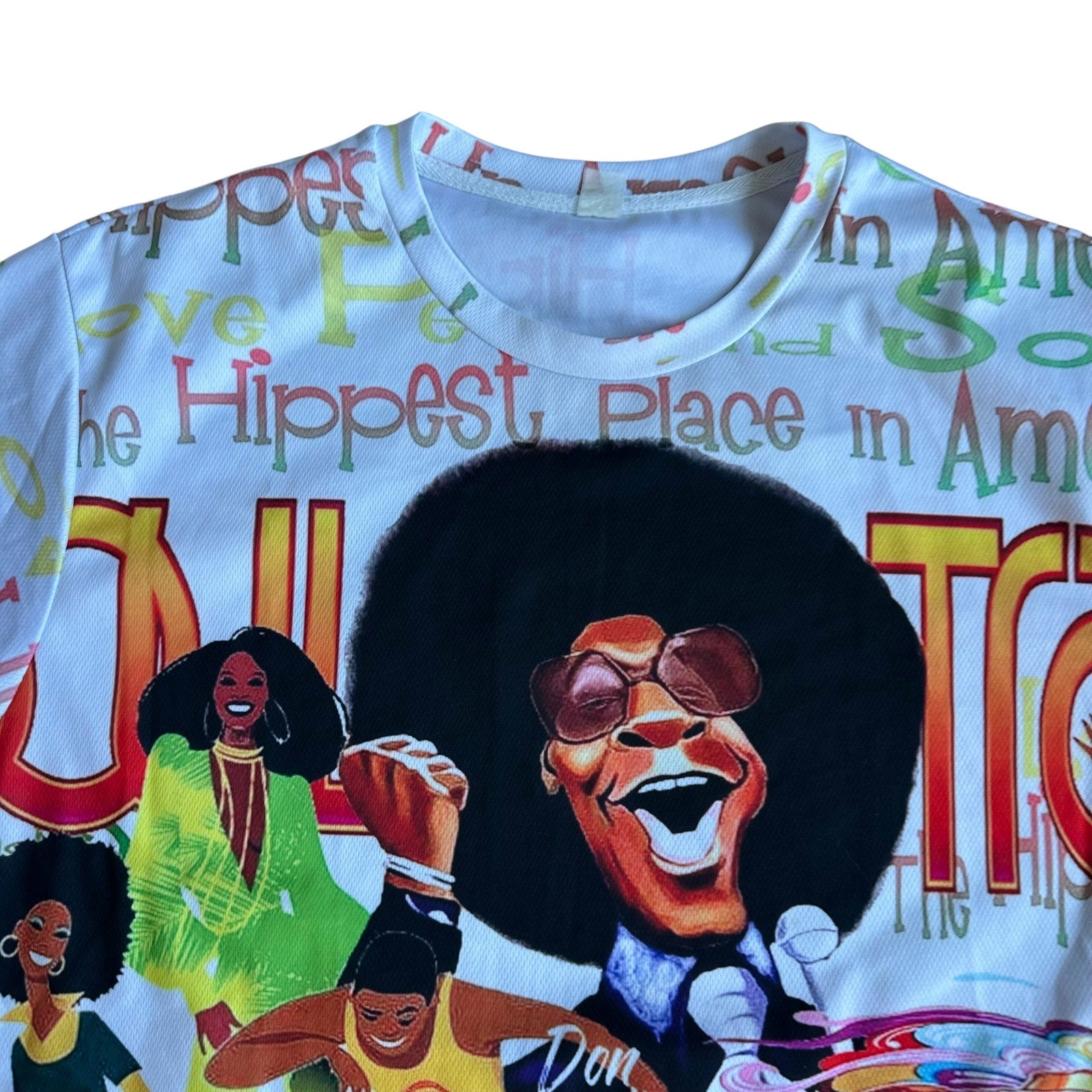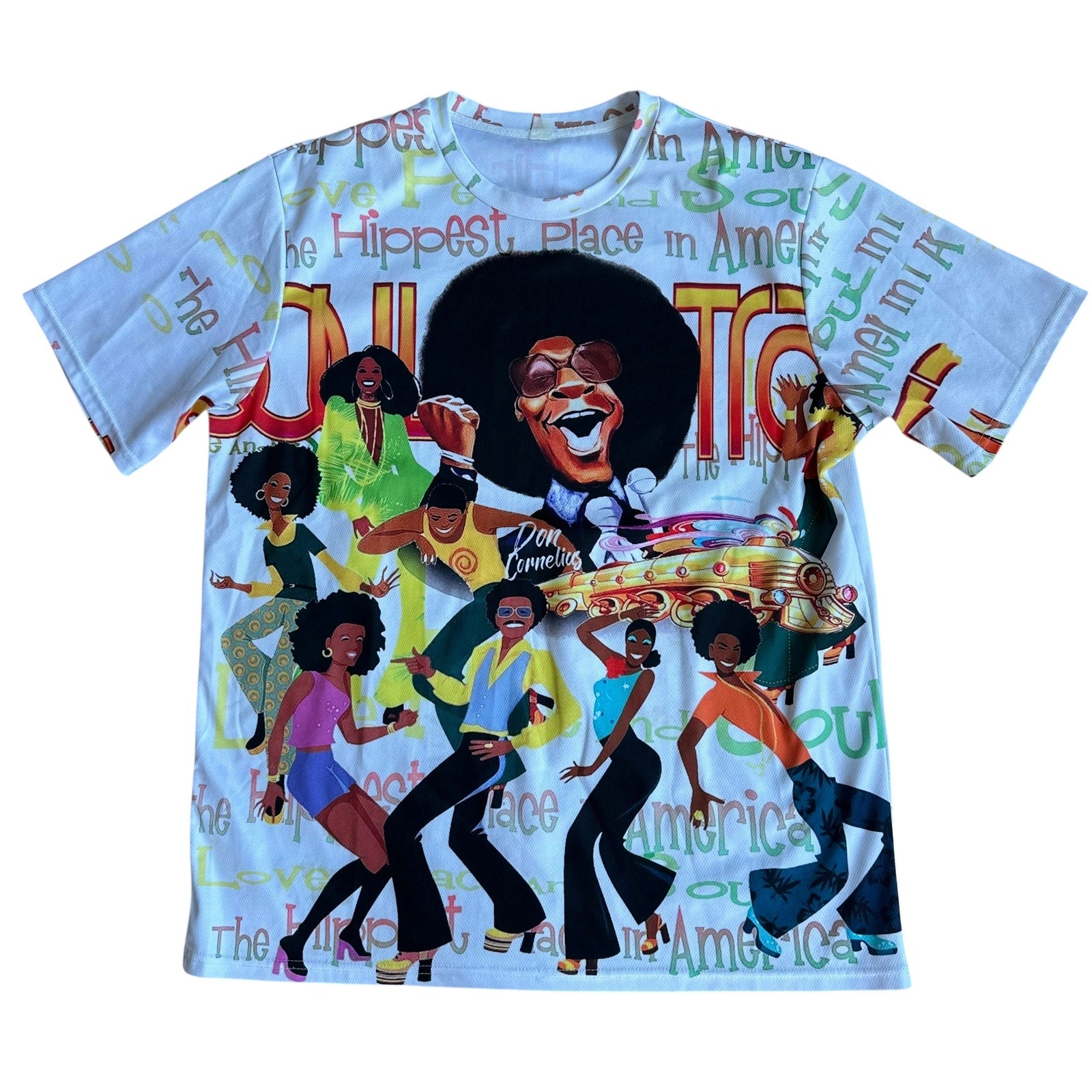 - vintage 90s y2k double sided all over print shirt for Don Cornelius