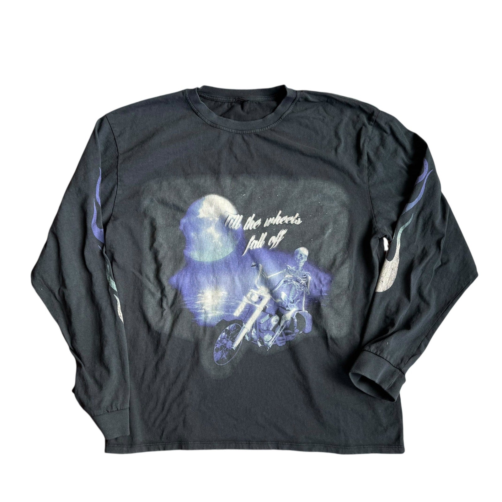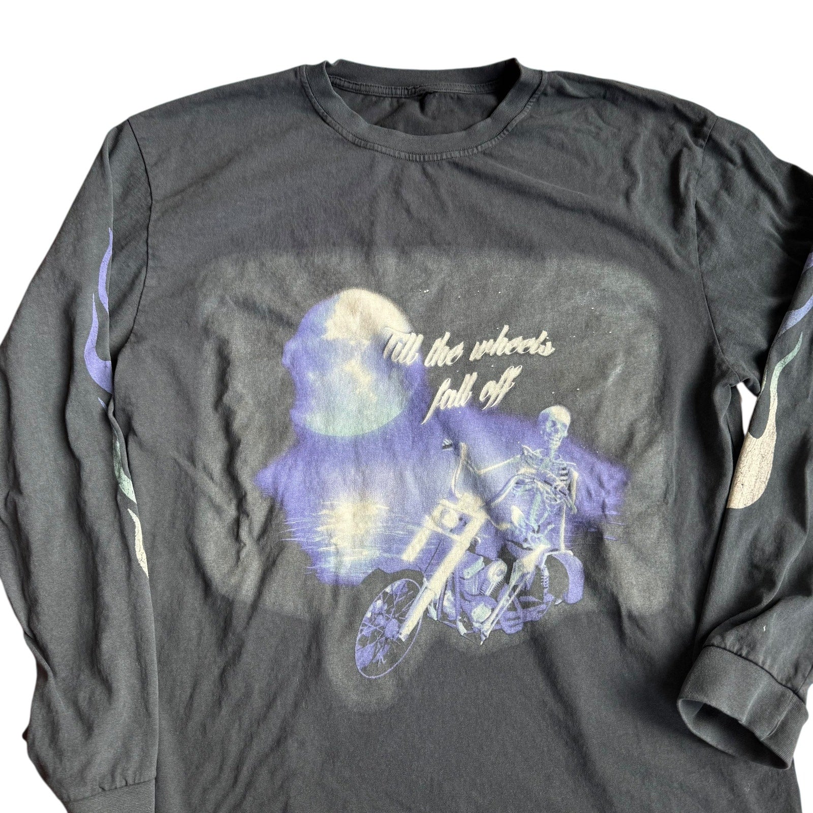 Till The Wheels Fall Off Skeleton Motorcycle Long Sleeve Mens XL