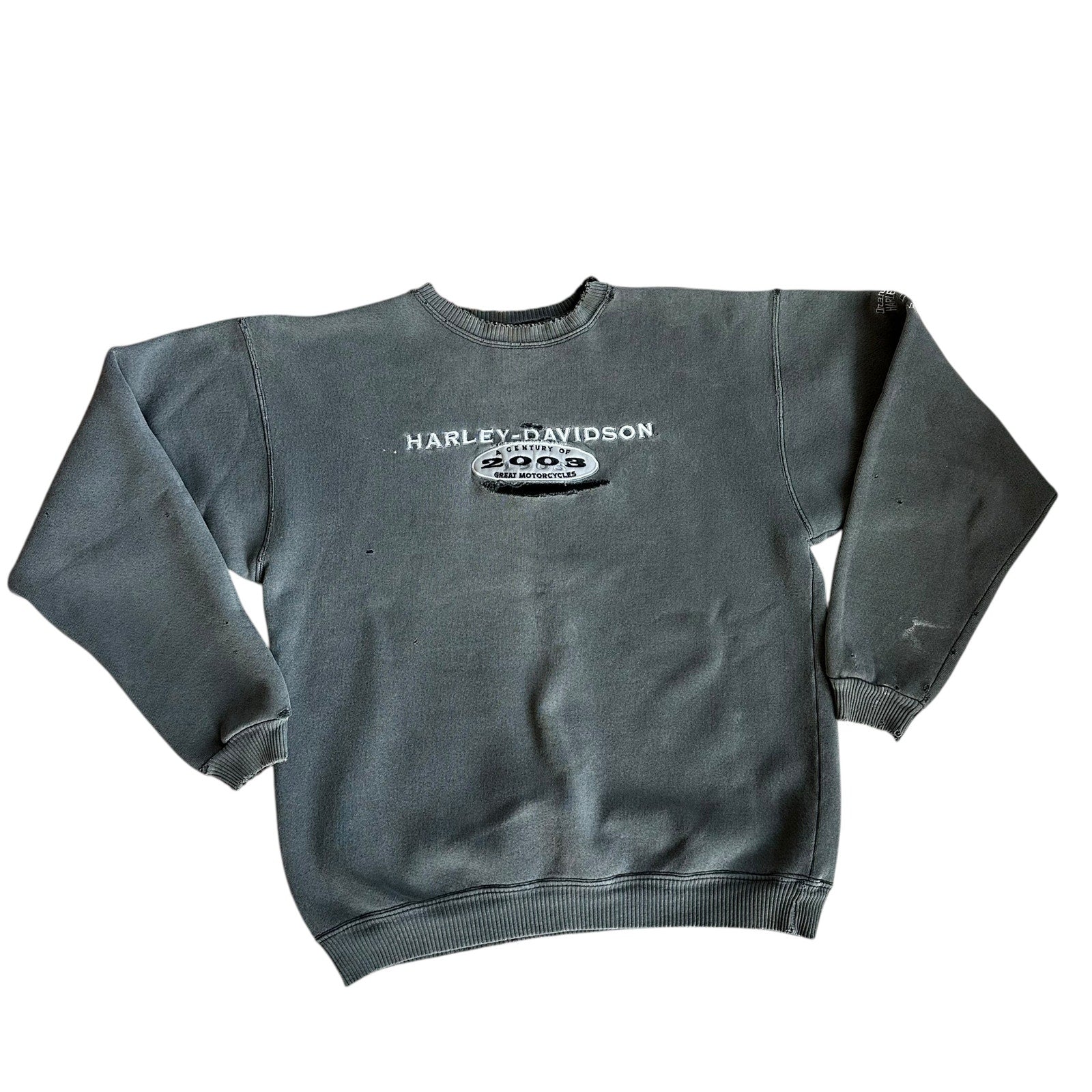 Vintage Distressed Harley Davidson Gray Crewneck Sweater Mens Large