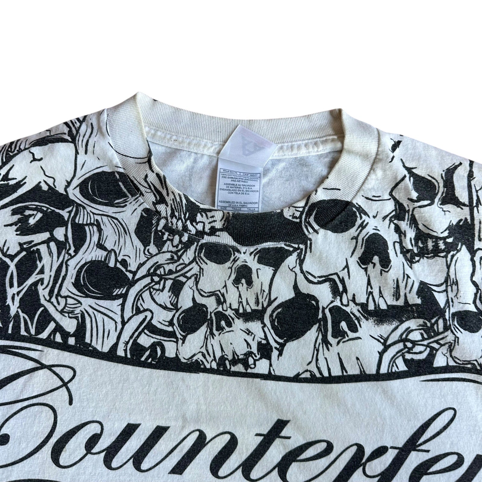 Vintage y2k COUNTERFEIT Skulls AOP T-Shirt Mens XL